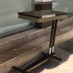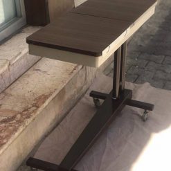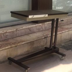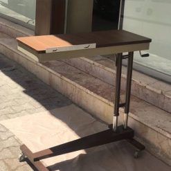 İkinci el hasta yemek masasının üst tablasındaki ayarlanabilir aparat sayesinde hasta rahatça kitap okuyabilir, tablet veya laptopu ile vakit geçirebilir.